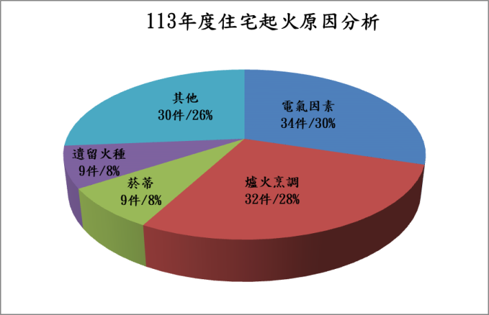 本縣113年度火災案件中,建築物火災佔了總火災案件13.8%,獨立式住宅火災更佔了建築物火災的53%。建築物火災之起火原因「電氣因素」居第1位,其中以短路發生率最高。因此消防局呼籲民眾使用電氣設備時應注意下列事項,以避免火災發生: