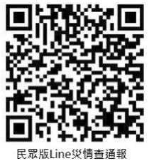 為便於本縣災害應變中心,執行各項應變工作,如發現災情請善用LINE災情報案並拍攝現場照片供應變人員判斷,以增加處理速度。LINE災情QRCODE如下。 注意:倘落涉及人命安全,請優先撥打119將由專人為您處理。