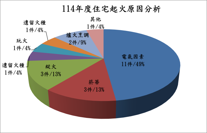 本縣114年第2季火災案件中,建築物火災佔了總火災案件46.9%,獨立式住宅火災計更佔了建築物火災的56.5%。建築物火災之起火原因以「爐火烹調」居第3位,原因為爐火烹調時操作不慎起火。因此消防局呼籲民眾使用爐火時應注意下列事項,以避免火災發生: