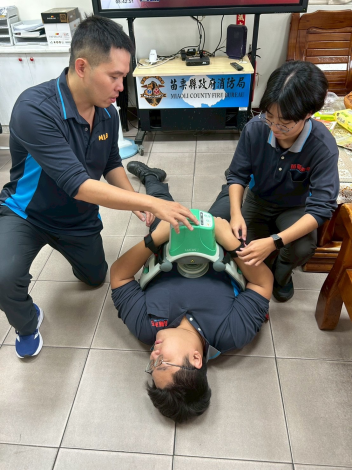 為精進緊急救護專業能力,頭屋分隊於11月12日進行救護器材操作訓練,內容包括自動心肺復甦機(LUCAS)、椅式擔架及抽吸式護木等項目。透過模擬各類緊急狀況,使隊員們實際操作並熟悉各項裝備,以確保在面對真實救援任務時能迅速上手、分秒必爭。