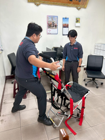 此次訓練著重於操作流程與團隊默契的培養,從病患搬運、心肺復甦到固定護木的每個環節,隊員皆在模擬情境中反覆演練,確保能在壓力下保持冷靜並迅速完成救護動作。透過不斷熟悉器材與強化協作,進一步提升反應速度與整體救援效率,讓隊員在面對真正的緊急狀況時能從容應對,於「黃金救命時間」內發揮最大效能,守護民眾生命安全。