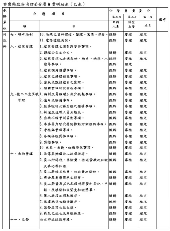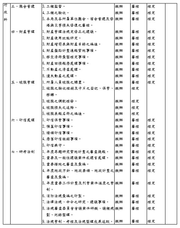 1.任免遷調。 2.獎懲。 3.考績(成)。 4.勤惰管理。 5.福利互助。 6.退休資遣撫卹。 7.待遇津貼。 8.健(公)保。 9.服務證明。 10.出國業務。 11.分層負責。 12.工作簡化。 13.組織編制。 037-558119請按1932