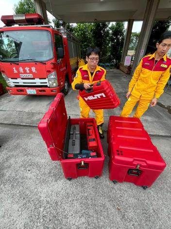 整裝待命後,本縣特種搜救隊逐年並配備各式高科技裝備器材,提昇對地震、倒塌建築物及侷限空間、山難、水難、土石流、森林火災、高層建築物火災、重大交通事故等重大災害搶救所需之各式高科技裝備器材,並配置救災人員指揮車、救災人員運輸車、小型救助車、小型通訊車、空壓照明車、高效能化學車及救災越野車等,必能有效提昇整體救災能力。