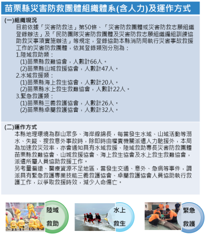 苗栗縣災害防救團體協助演練及救災情形